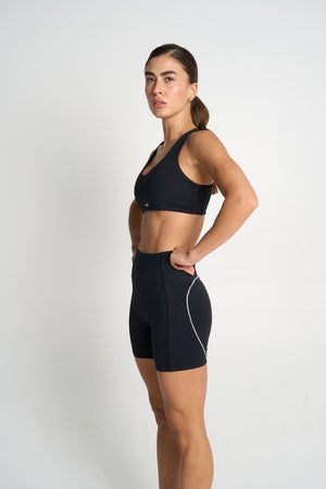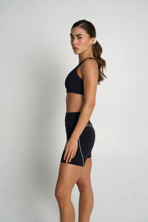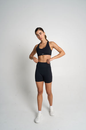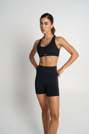 El top brinda soporte y estabilidad, mientras el short de tiro alto se ajusta al cuerpo con precisión, ofreciendo comodidad, seguridad y libertad total de movimiento. Su silueta atlética define sin exceso y se adapta al ritmo de cada entrenamiento.